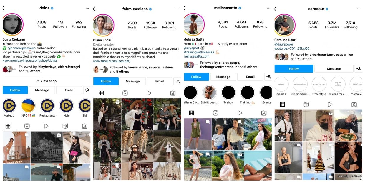 Our network counts on a large number of influencers and celebrities, covering a wide target audience whose interests may go from fashion to luxury to skincare and beauty, to consumer products, design, furniture, lifestyle and a lot more.
